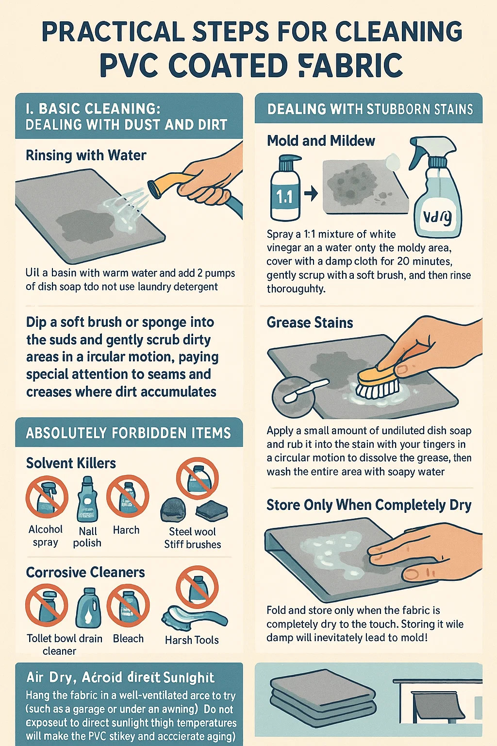 Zde jsou praktické kroky pro čištění Tkanina potažená PVC :